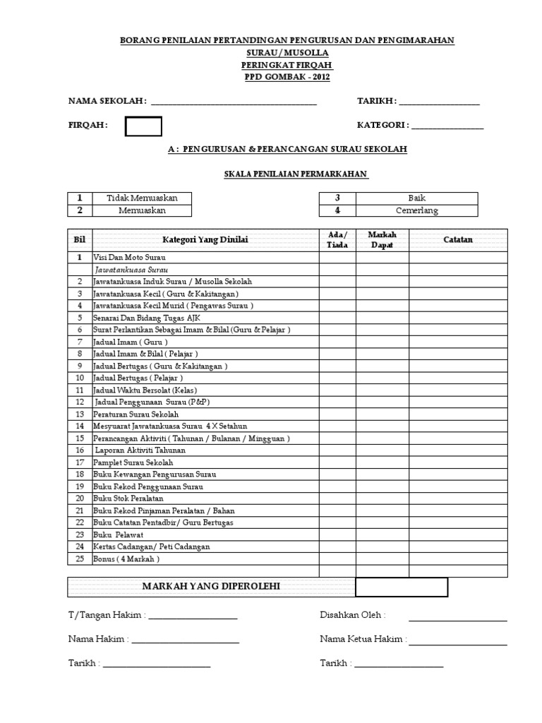 Pdf Instrumen Penilaian Surau Imarah Nur Salsabila Academia Edu