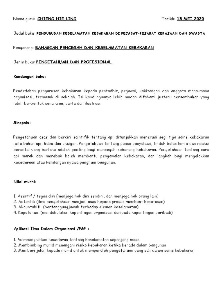 Book Riview 3 Docx Nama Sekolah Smk Tasek Permai Ampang Kod Sekolah Bea 4612 1 2 3 Nama Guru Kamarul Zaman Bin Sulaiman Judul Pengurusan Keselamatan Course Hero
