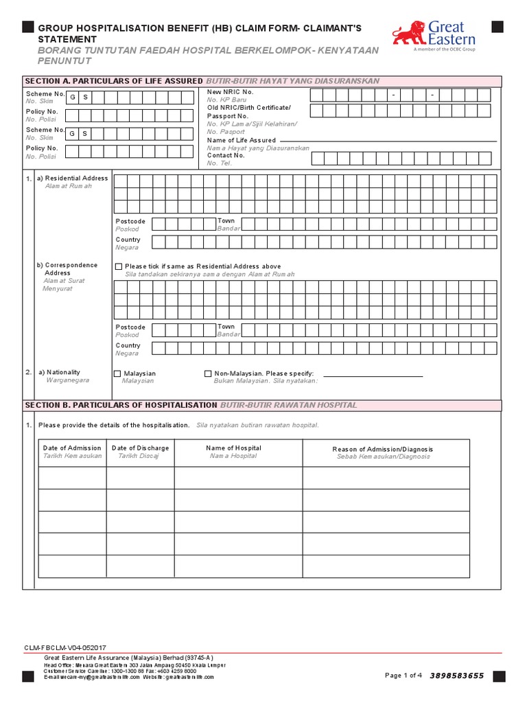 Https Www Greateasternlife Com Content Dam Great Eastern My Homepage Personal Insurance Get Help Claims Living Assurance Claim Living Assurance Claim Claimant Statement Pdf