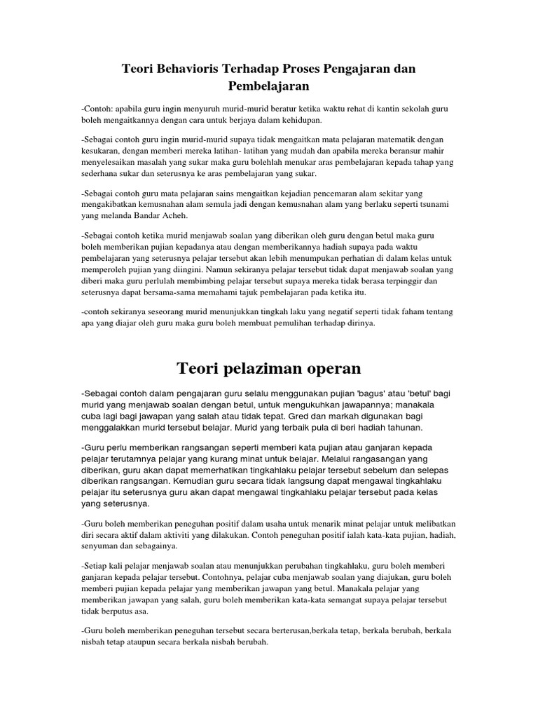 Teori Behavioris Terhadap Proses Pengajaran Dan Pembelajaran Docx