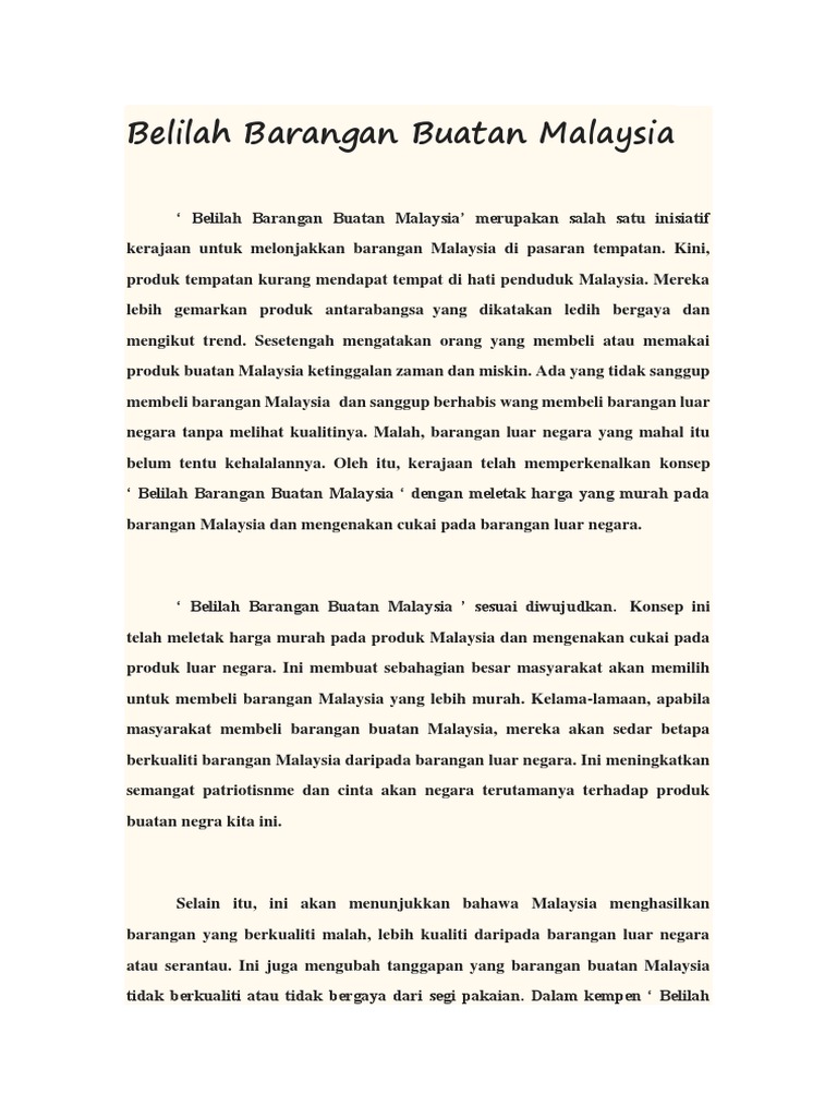 Karangan Kebaikan Membeli Barangan Buatan Malaysia