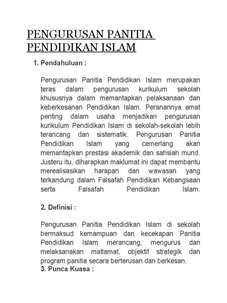 Manual Pengurusan Panitia Pendidikan Islam 2021