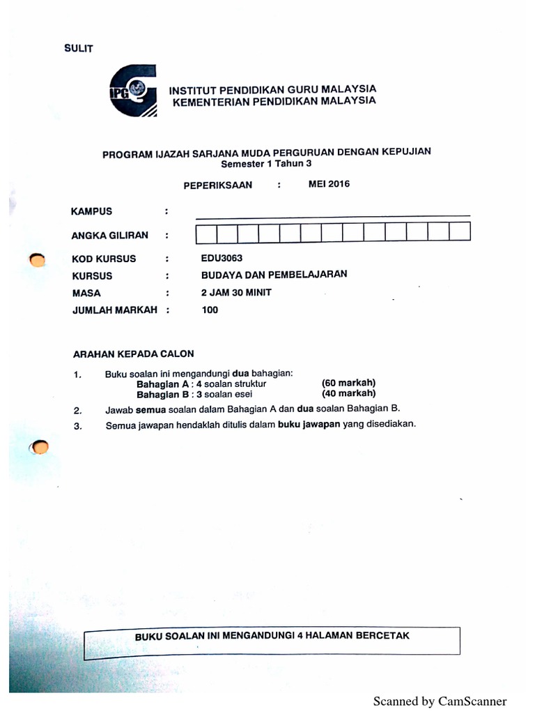 Edup3073 Budaya Dan Pembelajaran Mei 2016 Pdf