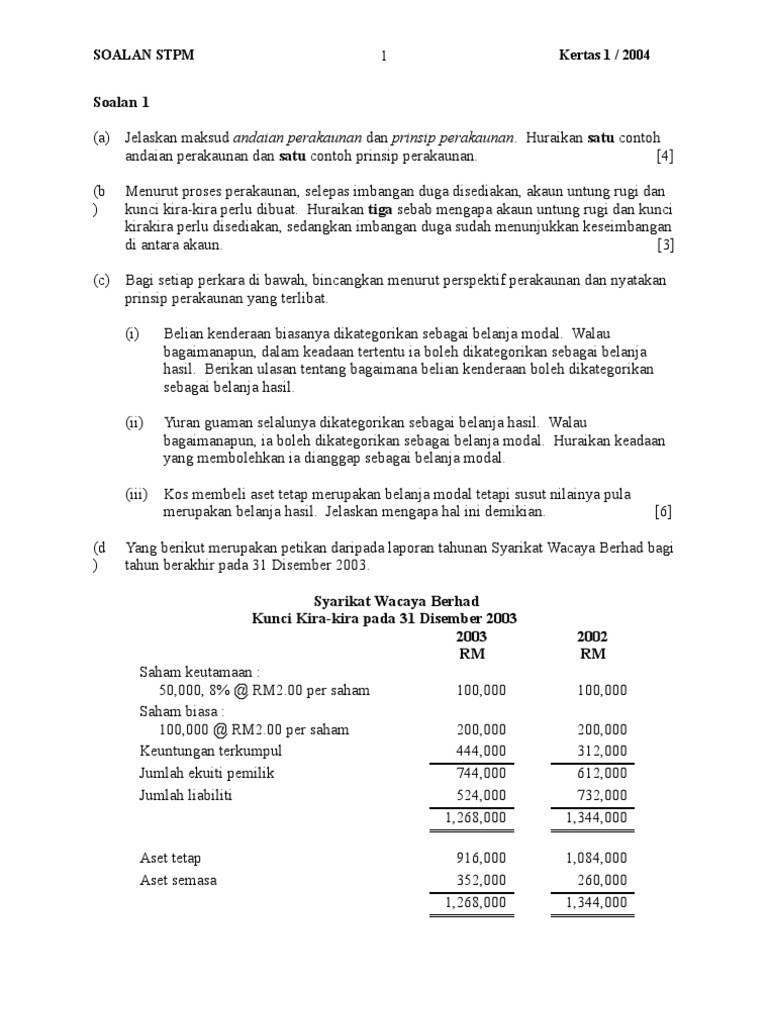 Jawapan Perakaunan Stpm 1 2003 Kertas