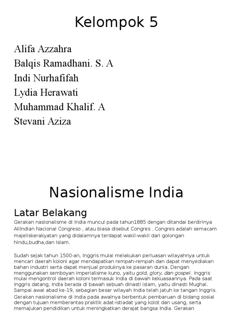 Sejarah Nasionalisme India Dan Indonesia By Nerissa Hansa