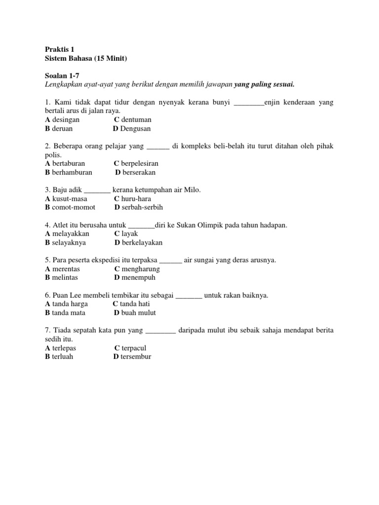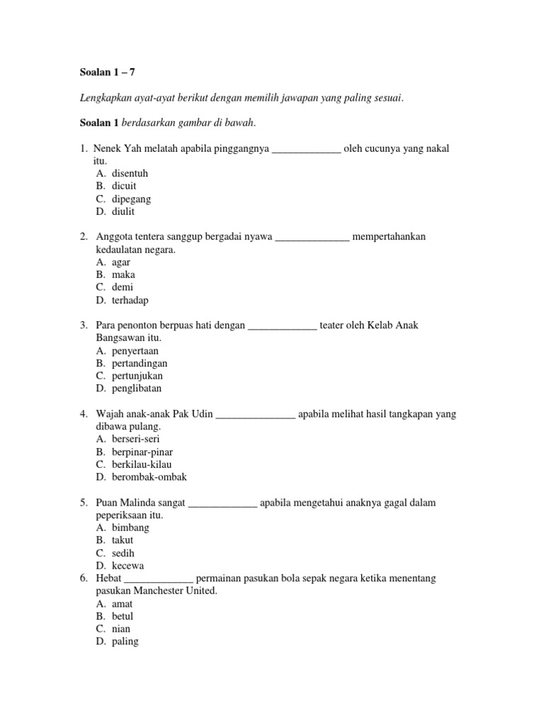 Soalan 1 7 Lengkapkan Ayat Ayat Yang Berikut Dengan Memilih Jawapan Yang Paling Sesuai Pdf Free Download
