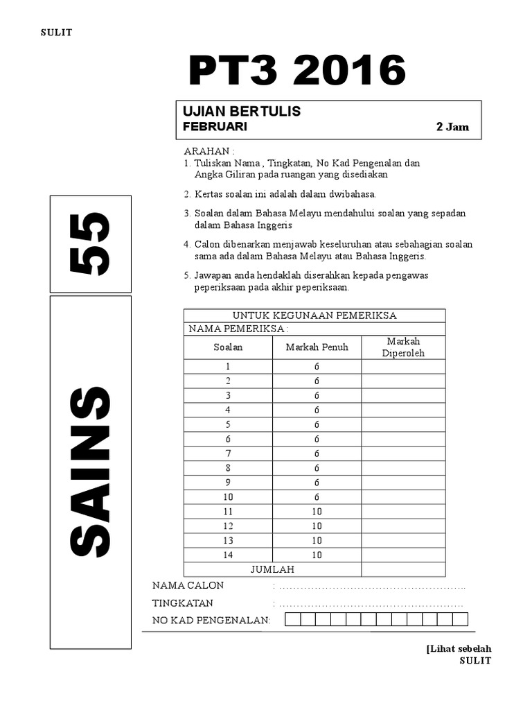 Contoh Soalan Pt3 Sains Beserta Jawapan Latihan 2021