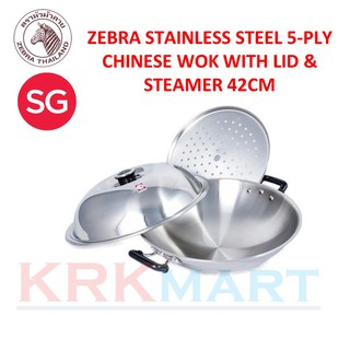 100 Original Zebra Thailand Stainless Steel 42cm 3 Ply Chinese Wok Lazada