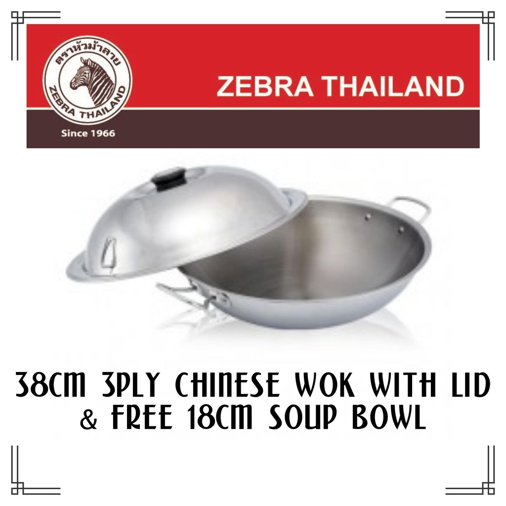 100 Original Thailand Zebra Stainless Steel 38cm 3ply Chinese Wok With Lid Z176411 176411 Lazada