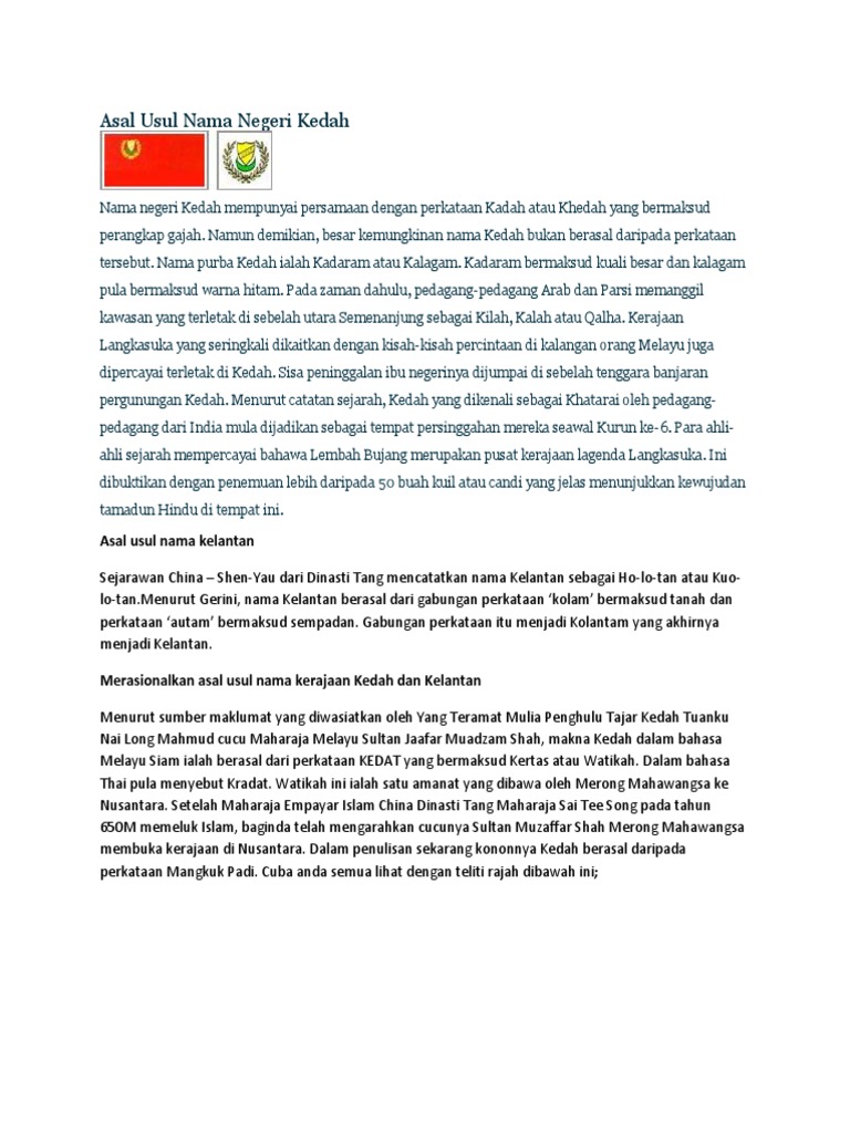 Asal Usul Nama Negeri Kedah Dan Kelantan
