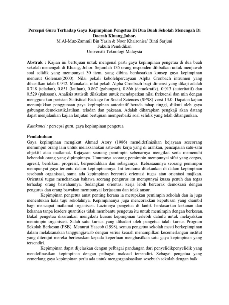 Pdf Kepemimpinan Guru Kolej Mara Satu Kajian Kes