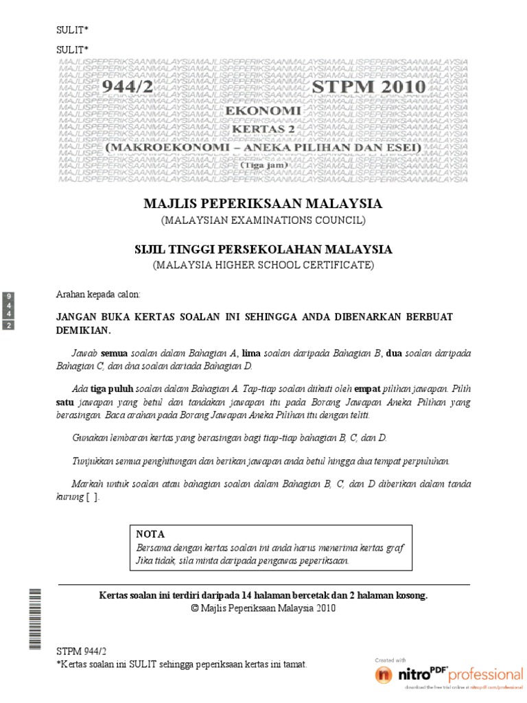 Stpm Trial 2010 Ekonomi 2 Kedah Pdf Document