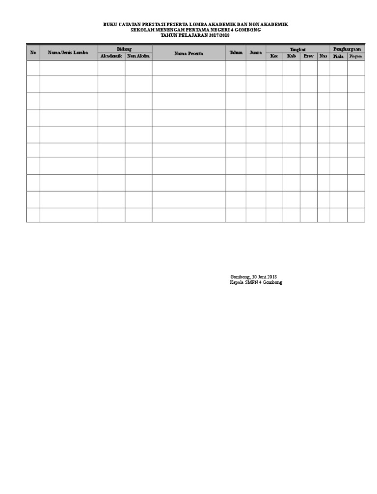 Contoh Format Buku Catatan Prestasi Siswa Ilmusosial Id