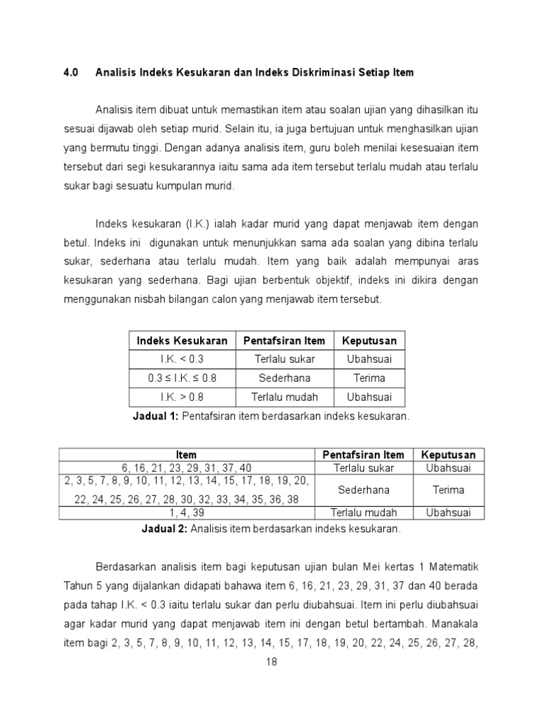 Jadual Perbandingan Indeks Kesukaran Dan Indeks Diskriminasi