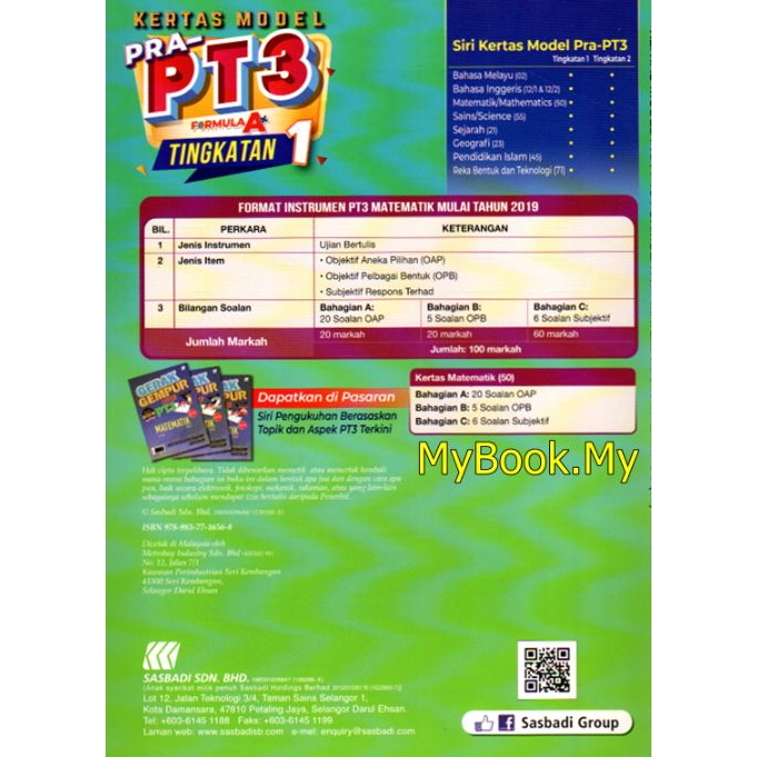 Topbooks Sasbadi Kertas Model Pra Pt3 Formula A Sains Tingkatan 1 2020 Shopee Singapore