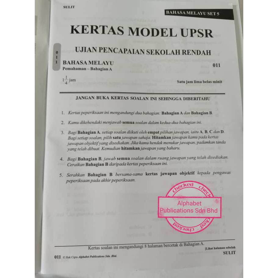 Bl Kertas Soalan Peperiksaan Sebenar Upsr Bahasa Melayu Shopee Malaysia