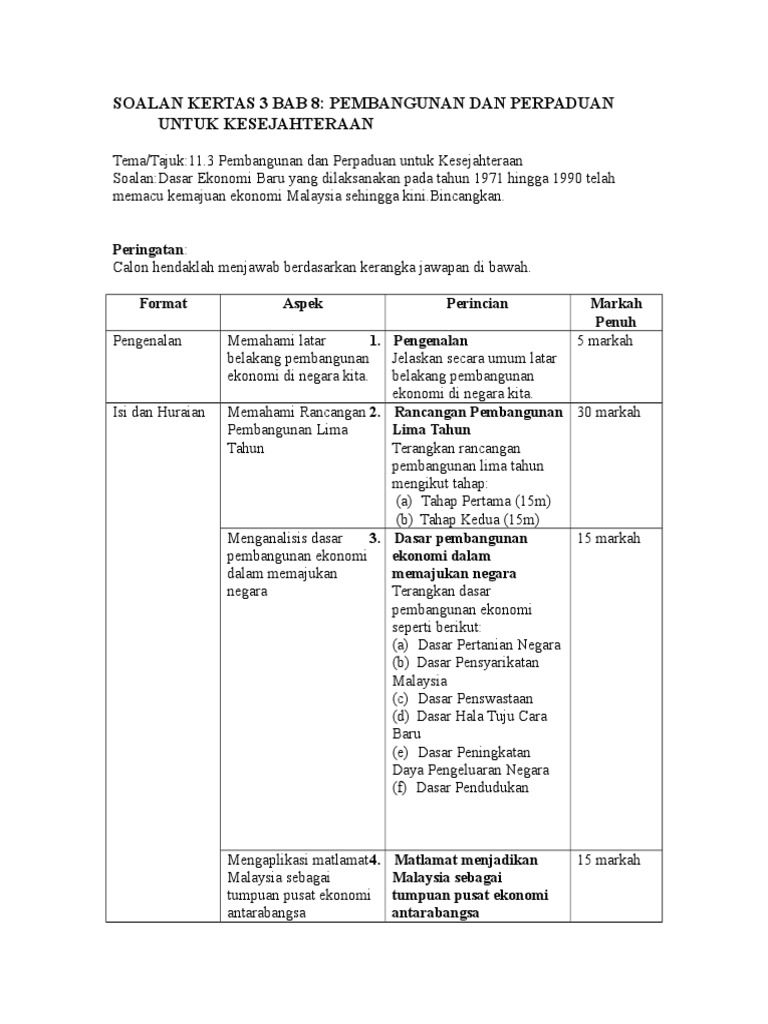 Skema Jawapan Pembangunan Dan Perpaduan Kertas 3 Bb 8