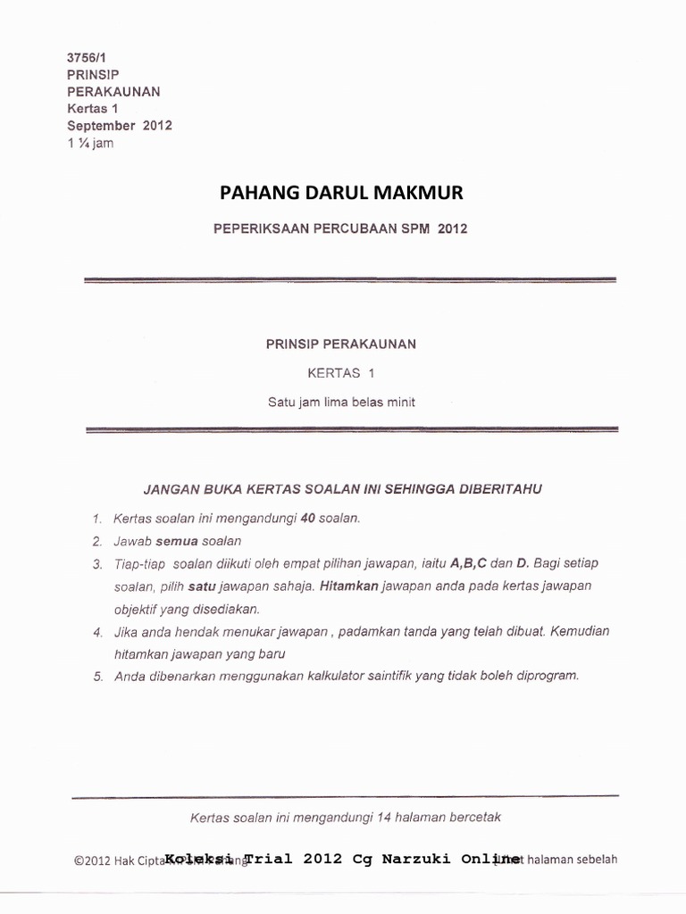 Soalan Percubaan Perakaunan Stpm P1 Pahang 2012 Gurubesar My
