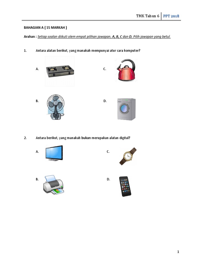 Soalan Tmk Teknologi Maklumat Komunikasi Tahun 6 Ujian 1 Bulan Mac 20