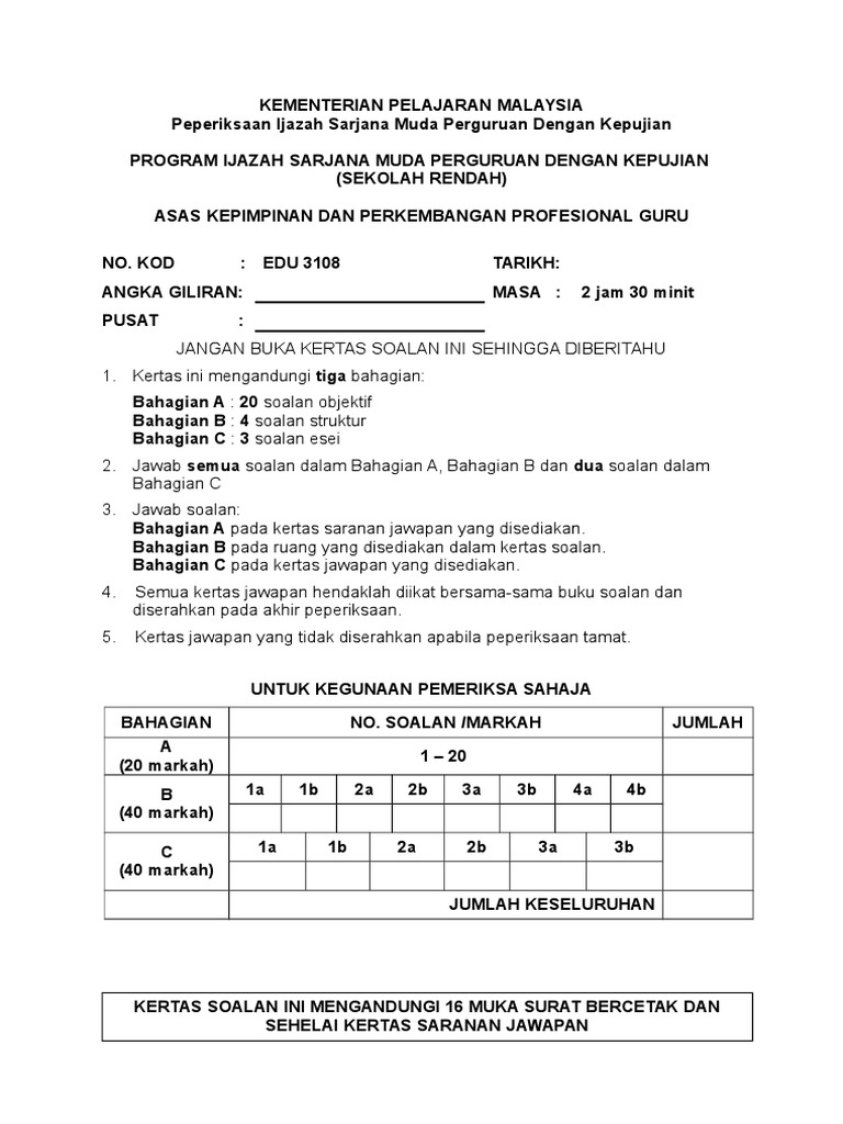 Soalan Objektif Asas Kepimpinan Dan Perkembangan Profesional Guru