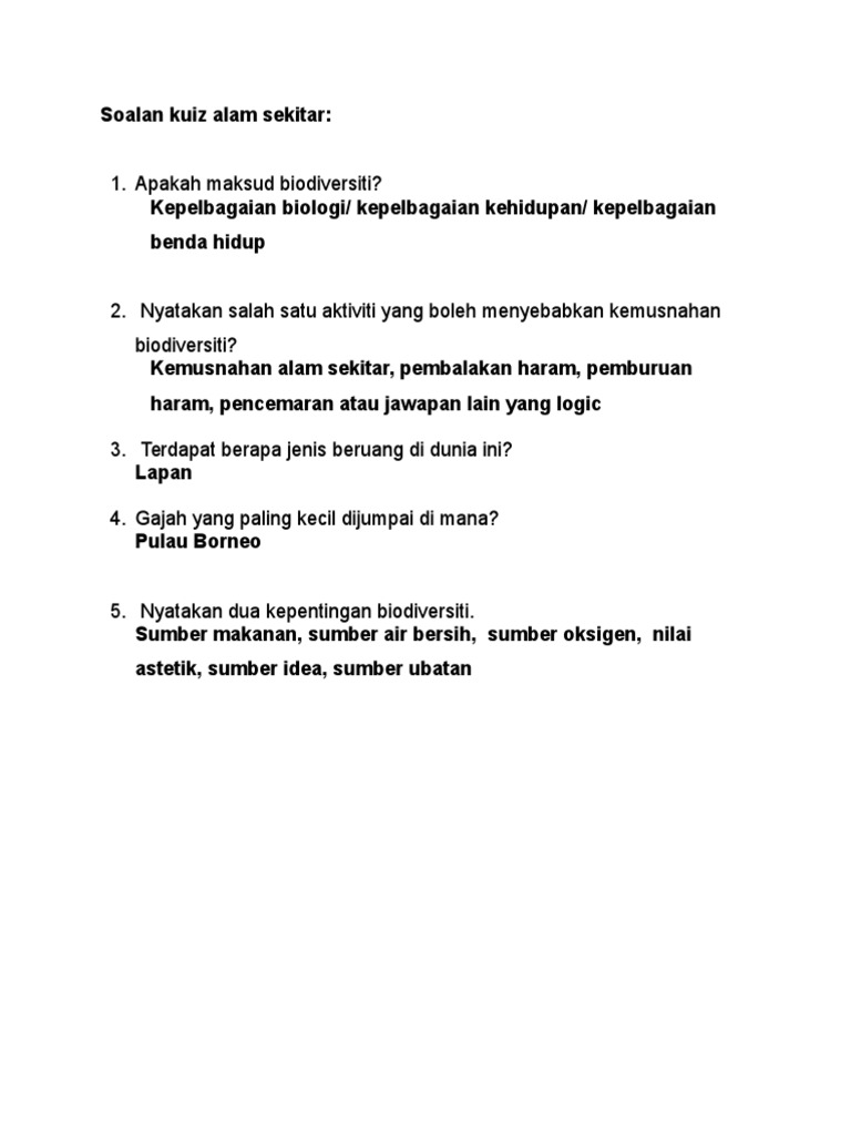 Dokumen Serupa Dengan Soalan Kuiz Alam Sekitar